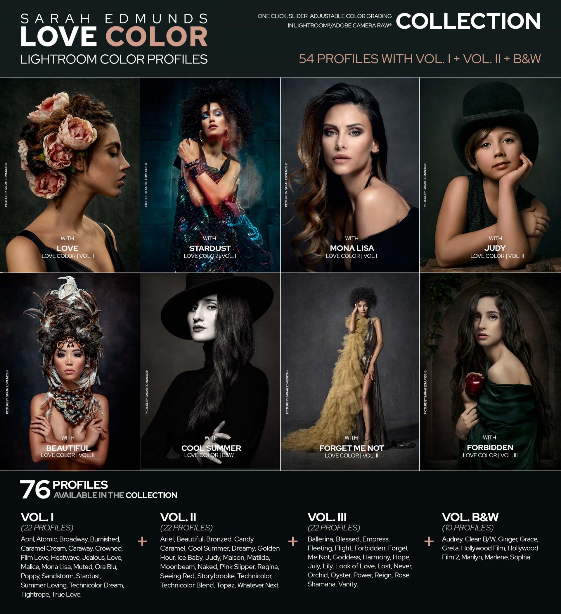 With LOVE COLOR you can choose a single Volume, or a combination of more of them. Each chapter comes with a balanced mix of profiles designed for portraits, children, weddings, pets or commercial and fashion. You can be creative and tune the profile of choice to deliver your distinctive look.